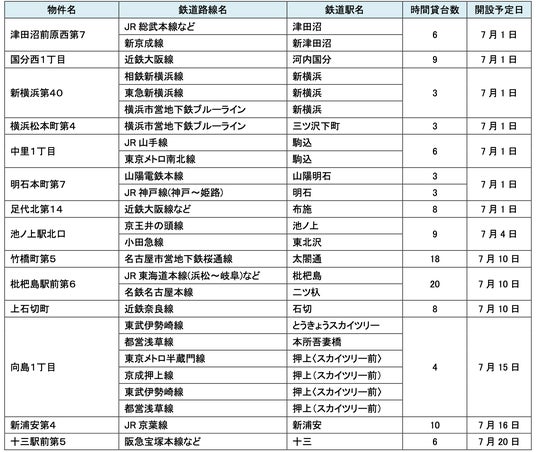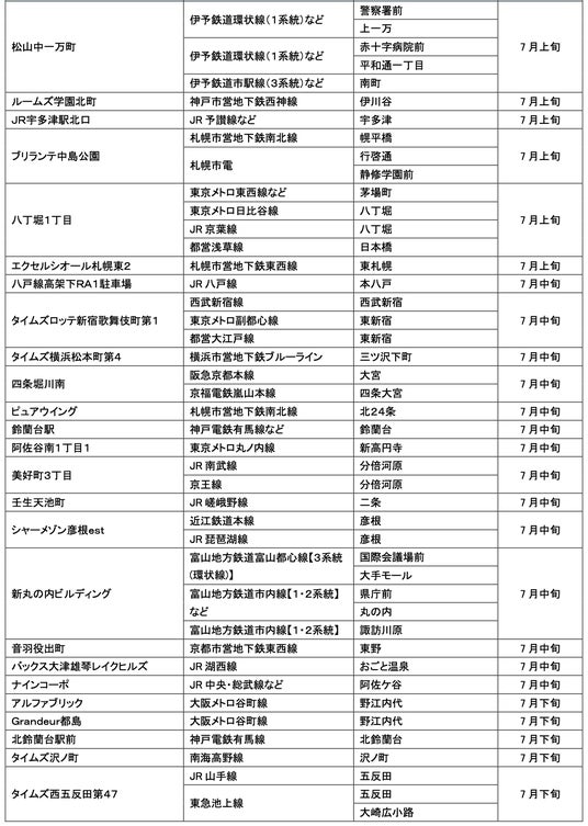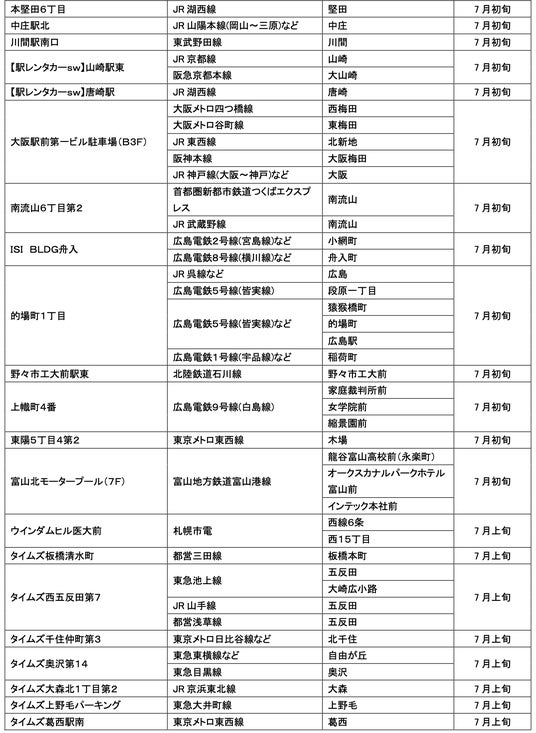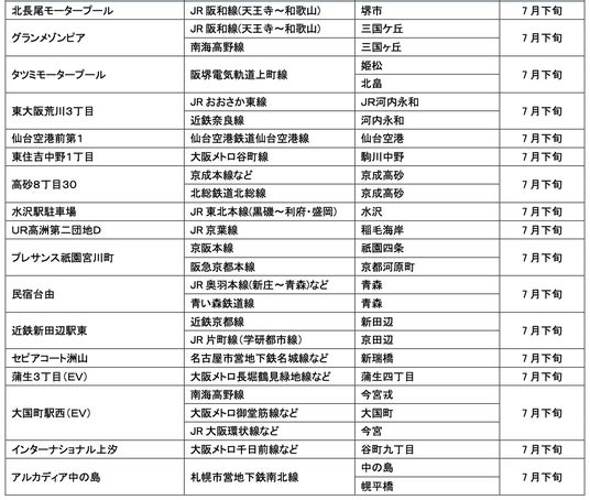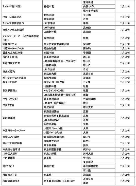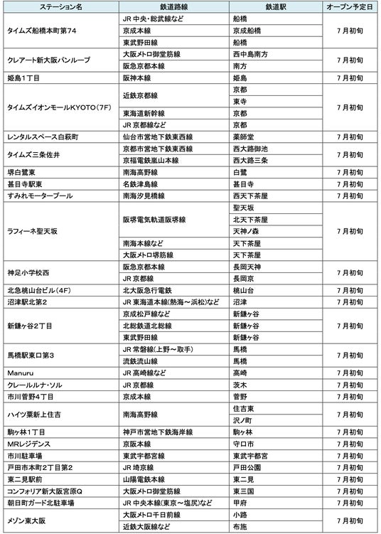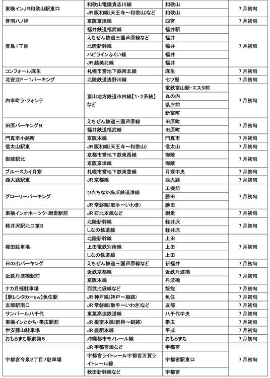 7月にオープンおよびオープン予定の「パーク&ライド」に適した駐車場は14件、「レール&カーシェア」に適したステーションは169件です。