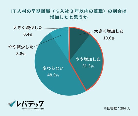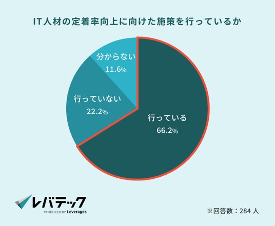 「日本を、IT先進国に。」をビジョンに掲げるレバテック株式会社 ( https://levtech.jp/ ) は、IT人材を採用する企業の採用担当者284名を対象に、IT人材の採用・定着に関する実態調査を実施しました。