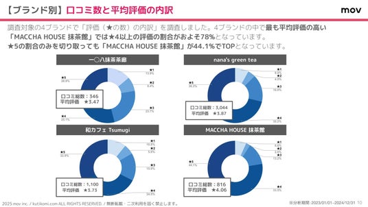 4ブランドの中で最も平均評価の高い「MACCHA HOUSE 抹茶館」では★4以上の評価の割合がおよそ78%となっています。