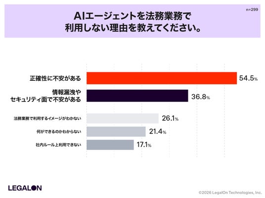 法務担当者へのAIエージェントの認知は8割を超え、利用経験も4割に達しています。これは数年前では考えられなかったスピードです。一方で、未導入理由と導入条件の両方で「正確性」と「セキュリティ」が最上位に挙がったことは、法務という職種の本質を改めて示していると感じています。法務は、効率に加えて「根拠を示せるかどうか」が重要視されます。ここを乗り越えられなければ、本格的な普及は起きません。