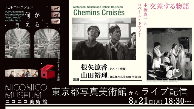 株式会社ドワンゴ(本社:東京都中央区、代表取締役社長:夏野剛)は、ライブ配信サービス「ニコニコ生放送」で提供している、学芸員や専門家の解説とともに展覧会の魅力をお届けするオンラインギャラリートーク企画番組「ニコニコ美術館」にて、東京都写真美術館で同時開催中の展覧会の模様を8月21日(月)18時30分から生中継します。