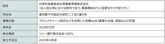 ソニー銀行株式会社(代表取締役社長:南 啓二/本社:東京都千代田区/以下 ソニー銀行)は、関係当局の許認可を取得し、他業銀行業高度化等会社(*1)として、web3関連事業を営む当行100%出資子会社の設立を5月27日開催の取締役会において決議しましたので、お知らせします。