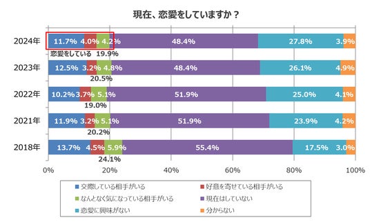 ・恋愛中の独身ミドル・シニア世代は19.9%、昨年調査より微減