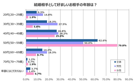 ・理想の結婚相手トップは「50代」、男性は20~30代のお相手も視野に