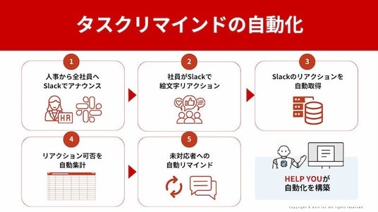 特に、新規ツールの導入コストなしで、既存のSlackやGAS(Google Apps Script)を連携。約200名を対象としたリマインド業務の自動化・仕組み化に成功し、業務負荷の大幅軽減と対応率向上を実現しました。