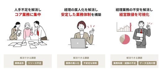 急な退職や産休・育休などで経理担当者が不在となった場合でも、単なる引き継ぎ対応ではなく、経理機能そのものを外部で安定的に代替できる点が、通常の経理代行サービスとの大きな違いです。