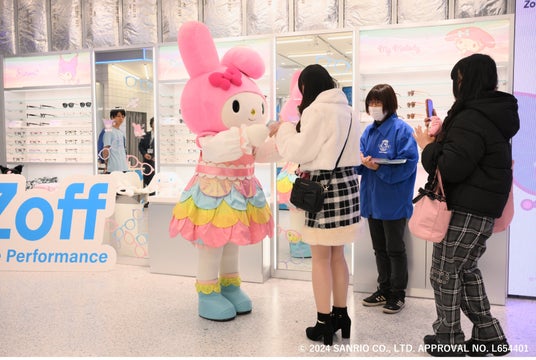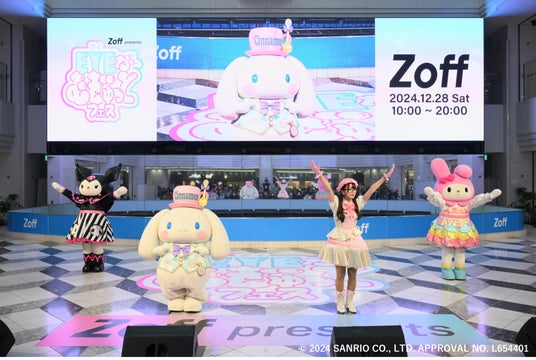 メガネブランド「Zoff(ゾフ)」は、株式会社サンリオ(本社:東京都品川区)の人気キャラクターたちと初めてコラボレーションした、アイウェアコレクション「Zoff|Sanrio Characters(サンリオキャラクターズ)」の発売を記念し、シナモロール、マイメロディ、クロミが登場するイベント「Zoff presents “EYEがむぎゅっと”フェス」を、2024年12月28日(土)に「サンシャインシティ 噴水広場」で開催しました。