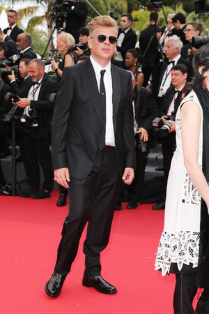 映画監督のミシェル・アザナヴィシウスは、ネイビーウールのピークドラペルスーツにライトブルーのコットンシャツ、ブラックレザーの「ディオール エクスプローラー」ダービーシューズを合わせた装いで登場。