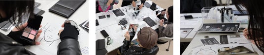 生徒が事前に選んだ欲名でつくられたアイシャドウパレットを一人ひとりに配布。