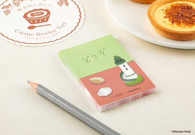 今回の限定缶にはスペシャルな特典として、パッケージにも使われている灯台と貝殻をモチーフにしたイラストのふせんが同梱されています。これはもう、使うのがもったいないほどの可愛さ!大切にとっておくのもいいですが、ぜひクレームブリュレタルトを配る時のお世話になっている人へのメッセージに使ってみてください。