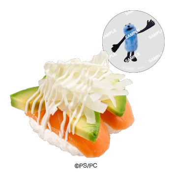 今回のコラボでは、ツクツクやファンファンのデザインも加わり、コラボ限定ピック付きのおすしや、コラボ限定ステッカー付きのスイーツなどが登場します。コラボ限定クリアピック(全5種)付きのおすしでは2種類のメニューを展開します。「えびと蒸し帆立のバジルマヨチーズ炙り」は、チーズとバジルの香りが食欲をそそる創作すしです。「サーモンアボカド」は、サーモンとアボカド、オニオンスライスとマヨが絶妙な組み合わせになっています。また3月18日(水)からは、ポップなデザインのコラボ限定ピック(全5種)付きのおすしとして、肉の旨みを存分に楽しめる「こだわりハンバーグにぎり」と、ねぎまぐろのねっとりとした食感と旨みにたくあんの食感が合う「まぐたく巻」の2種類のメニューが登場します。