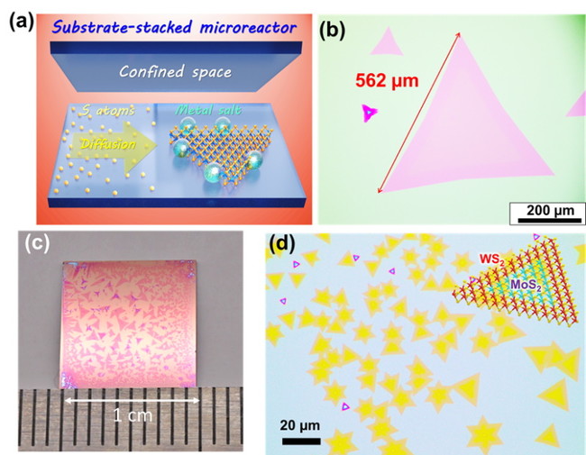 マイクロリアクタと呼ばれる閉じ込め空間を利用してTMDCの成長を制御し、成長機構を明らかにしました。