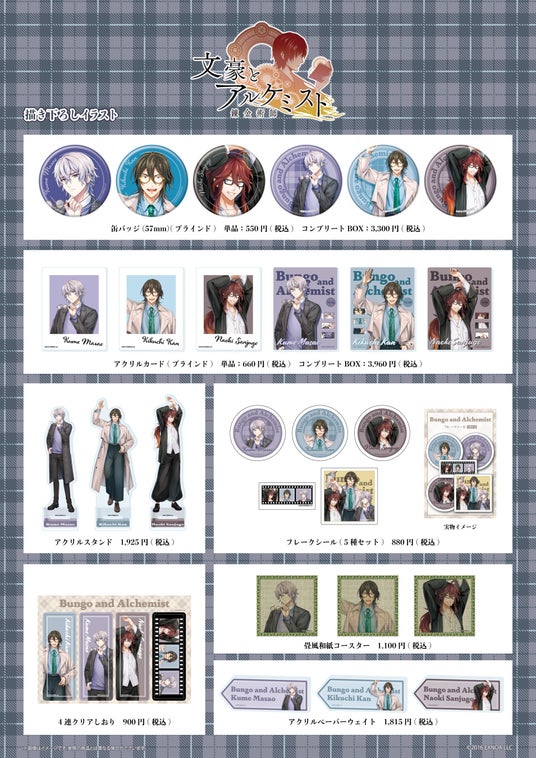 『文豪とアルケミスト』の新作グッズが発売! 本日11月28日(木)から通販サイト「eeo Store online」で先行通販が、12月28日(土)からeeo Store池袋本店 本店スペースで店頭販売がスタートします。