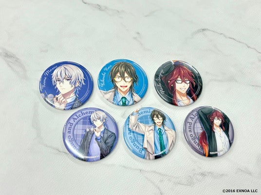 缶バッジは、大きさおよそ5.7cm。お顔部分と上半身をクローズアップした2つのデザインがあります。