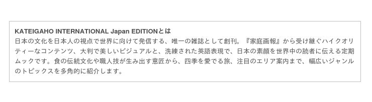 2020年3月2日(月)『KATEIGAHO INTERNATIONAL Japan EDITION Spring / Summer 2020』発売