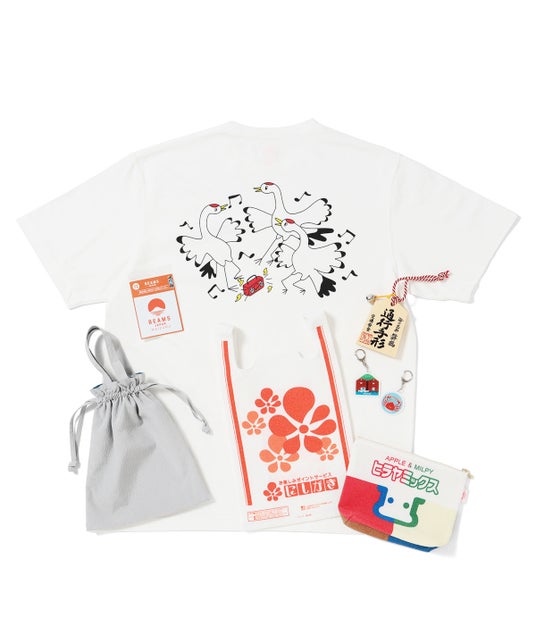 舞鶴をはじめとした北京都エリアの魅力を伝える「ビームス ジャパン 舞鶴」では、店舗限定コラボ商品として〈丹後ちりめん織元たゆう〉による正絹(しょうけん)の袋物類、丹後ちりめんのアイテム企画を行う〈たてつなぎ〉と手がけた地元密着型のローカルスーパー〈にしがき〉のレジ袋、地域住民に長く親しまれている牛乳〈ヒラヤミルク〉の紙パックデザインを活かしたトートバッグやポーチといった、特産品や地場企業にちなんだものから、陶芸家 〈DAISAKU〉や、デザイン・ユニット〈COCHAE(コチャエ)〉など、地元出身のクリエーターが手がけたアイテムまでも扱います。また「ビームス ジャパン 舞鶴」のキーカラーと設定した「白」は、江戸末期から明治初頭に舞鶴を寄港地とした北前船(きたまえぶね)の帆から着想を得たもので、その白色をベースカラーにしたロゴ入りのトートバッグやランチバッグ、小物類を店舗オープンにあわせて製作しました。同店では限定商品以外にも、全国の「ビームス ジャパン」店舗で取り扱う、日本全国の銘品をセレクトして展開します。