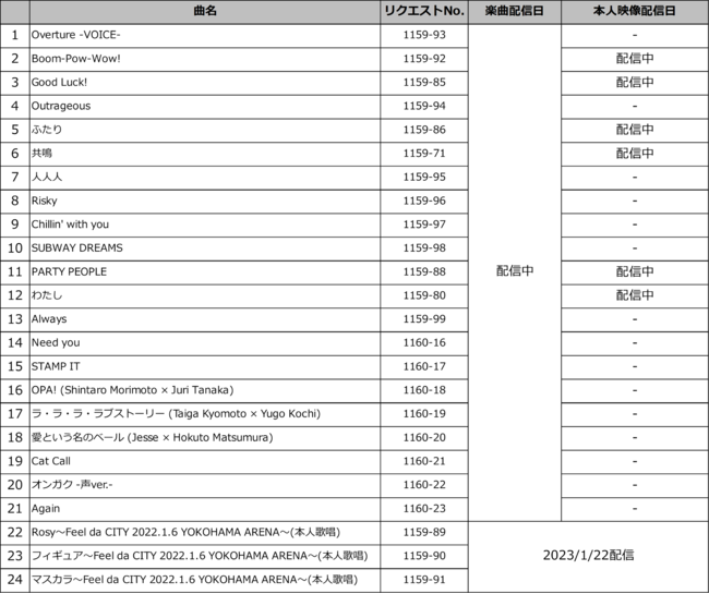 さらに2022年1月に開催した「Feel da CITY」横浜アリーナ公演から選りすぐりの3曲をLIVEカラオケで配信!
