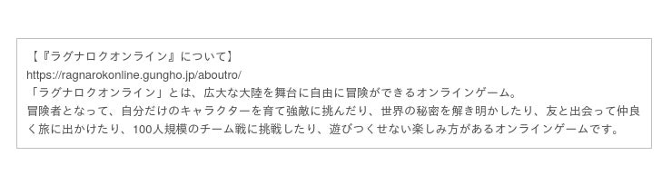 ガンホー・オンライン・エンターテイメント株式会社は、ファンタジーオンラインRPG『ラグナロクオンライン』において、本日、以下の情報を発表いたします。