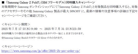 また、2025年7月17日(木)より「Samsung Galaxy Z Fold7(SIMフリーモデル)発売記念 予約購入キャンペーン」※を開催いたします。