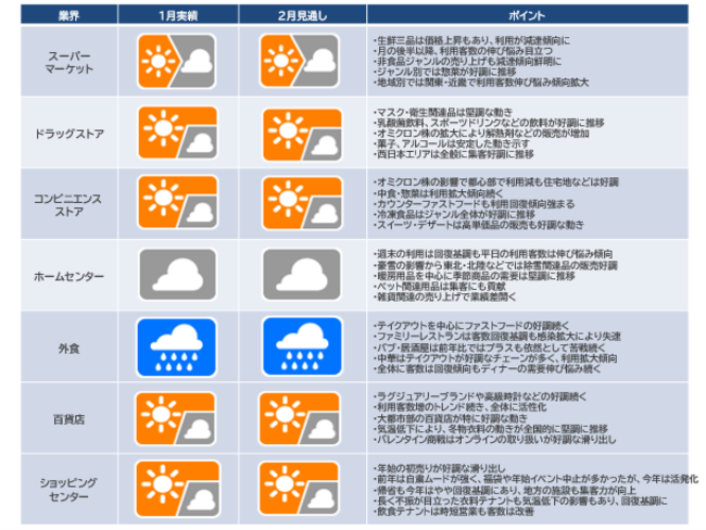 CCCマーケティング株式会社(本社:東京都渋谷区、代表取締役社長:北村和彦)にて、『暮らす人と共に歩み、共に考えるシンクタンク』をコンセプトとする「CCCマーケティング総合研究所」(以下「CCCマーケティング総研」)は、2022年1月の「産業動向レポート」および「産業天気予報」(https://www.cccmk.co.jp/thinktanks/industry-12)を発表いたしました。