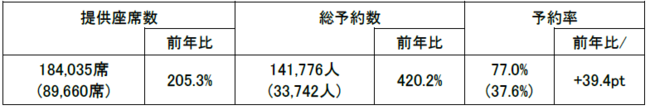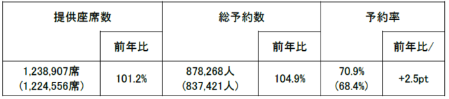 ※総予約数について、2019年との同日予約比では86.8%(2019年同日の総予約数は1,011,559人)