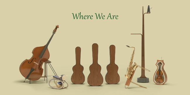 2023年4月にイタリア・ミラノで開催された世界最大級のデザインイベント「ミラノデザインウィーク」に当社が出展し、「You Are Here」の展示タイトルのもと、楽器と共に暮らすことが楽しくなる家具のような道具の新作11作品を発表しました。『Where We Are』では、これら11作品を日本で初めて展示します。