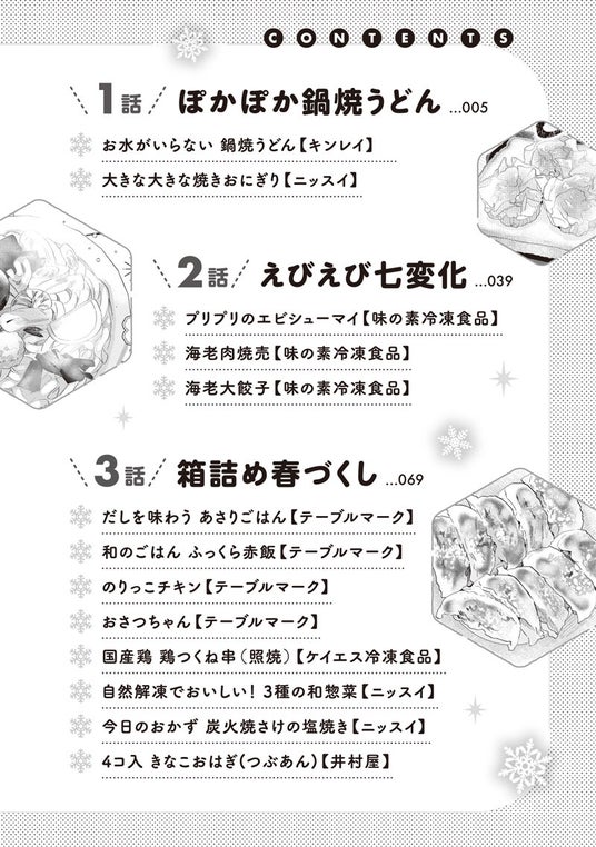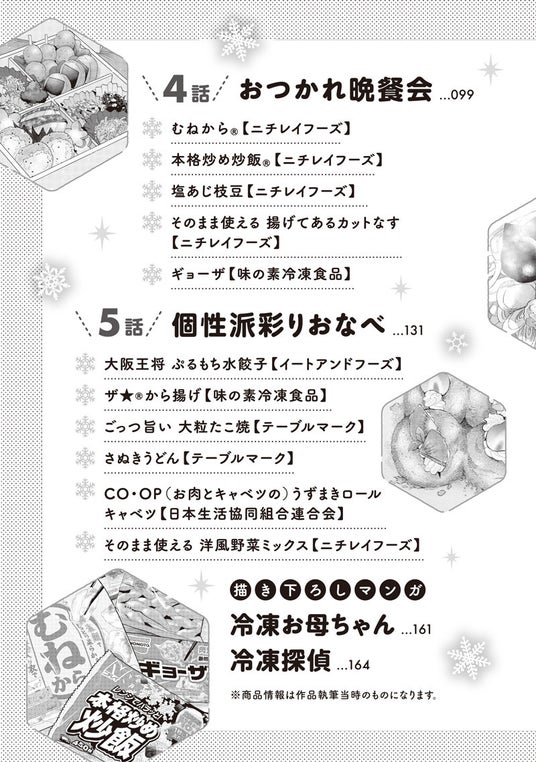 冷凍食品の手軽でおいしい食べ方満載♪ 出版社に勤める聖はファッション誌から不本意ながら少女マンガ編集部に異動することに。 教育担当になってくれたのは、美女でしごできの編集者・宇津木。オフではポンコツなところがある宇津木がマンガと同じくらい愛を注ぐのは、冷凍食品で…!?