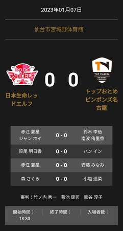 日本生命レッドエルフ vs トップおとめピンポンズ名古屋