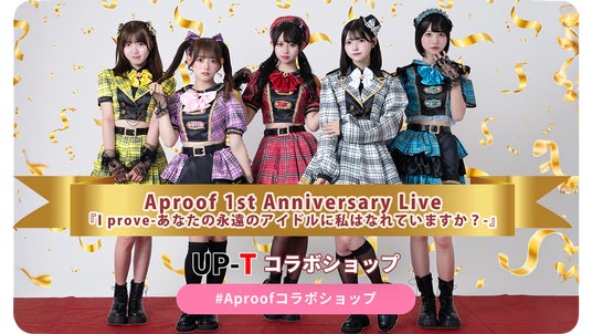 Aproof 1st Anniversary Live『I prove-あなたの永遠のアイドルに私はなれていますか?-』開催を記念して、UP-Tコラボショップが期間限定でオープン! ここでしか手に入らない、特別なデザインのアイテムをご用意いたしました。今回のコラボアイテムは、ライブの熱気や感動をそのまま形にしたような仕上がりで、メンバーの想いやこだわりが込められています。ファンの皆さまにとって、ライブの思い出を日常でも身近に感じられるような、唯一無二のラインナップとなっております。