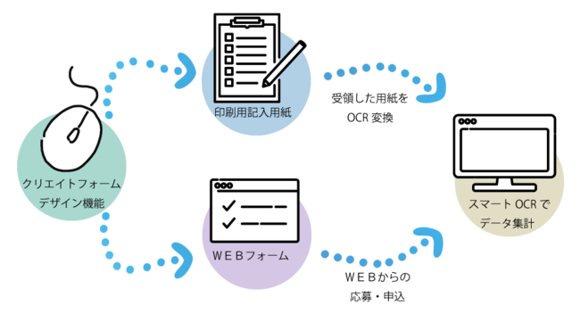 アンケート用紙・申込書の作成と同時にWEBフォームも作成できるので、紙とWEBの平行運用が可能です。DX推進をしながら、高齢者をはじめとするITに抵抗がある方々には紙の運用が可能となります。
