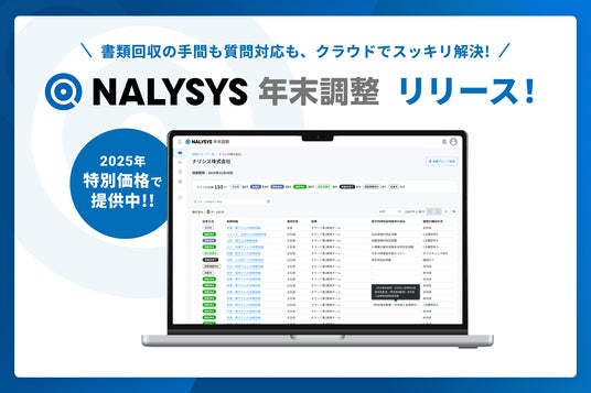 レバレジーズ株式会社が運営するHR系SaaSプロダクト「NALYSYS」は、年末調整業務をクラウドで一元化し、人事労務担当者の業務負担を大幅に軽減する新機能「NALYSYS 年末調整」の提供を開始いたします。本機能は、従業員からの情報収集から申告内容の確認、各種控除の対応、他システムとの連携までを網羅し、複雑な年末調整業務のDXを推進します。