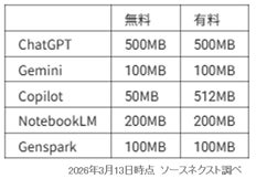 ・AIサービスごとのファイルサイズは、2026/3/25時点の公式データを元に設定しています