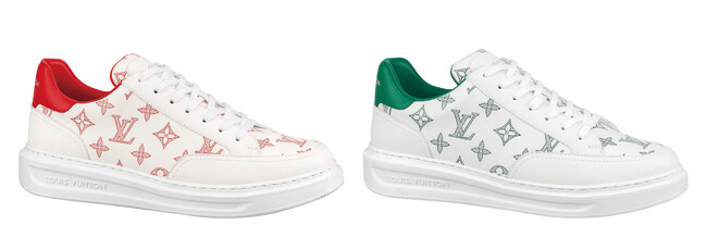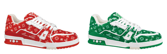 今シーズンのメンズ·コレクションのキーテーマであるモノグラム·テキスタイルと、バイカラーのグレインカーフレザーで再解釈した「LV トレイナー・ライン スニーカー」。サイドを彩る手書き風の「Louis Vuitton」シグネチャーやモノグラム·フラワー モチーフで飾ったバイカラーのラバーアウトソールなど、贅沢なディテールが散りばめられています。