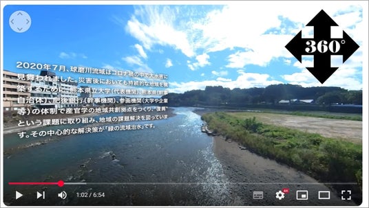 熊本県は、2020年7月の豪雨で大水害に遭った球磨川流域を対象に、産官学共同プロジェクト「流域治水を核とした復興を起点とする持続社会」地域共創拠点による「緑の流域治水」の取り組みが進められています。緑の流域治水は、流域全体を対象にして、流出抑制、氾濫流コントロール、土地利用規制など、河川や遊水池の整備などのハード面だけでなく、ソフト面での対策も充実させる新しい考え方の治水対策です。自然環境と共生しながら人々が安全・安心に住み続けることができて、豊かな環境と、より多くの若者が集う持続可能な地域の実現に向けて取り組まれています。
