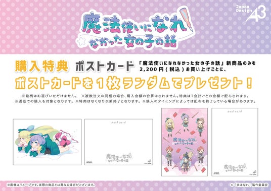 『魔法使いになれなかった女の子の話』の新商品のみを1会計2,200円(税込)お買い上げごとに、特典ポストカード(全2種)をランダムで1枚プレゼント。
