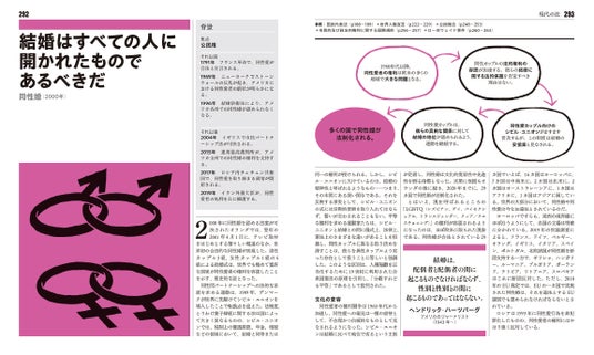 LGBTQやSDGs関連、安楽死など、現在も議論が続く身近なテーマも多く掲載。(P.292-293より)