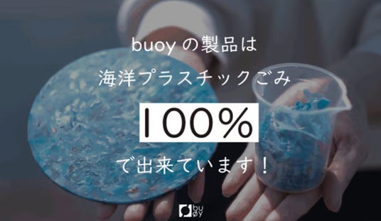 海岸漂着プラスチックごみのアップサイクル商品buoy。従来はほぼ100%埋め立てもしくは焼却廃棄されていたプラスチックごみを分別することなく一体で商品に成形する技術(特許取得済み)を保有。