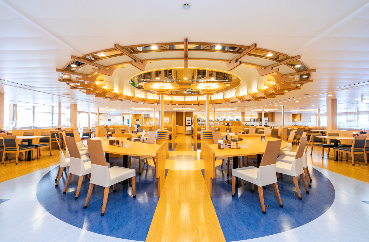 船内レストランでは九州各地より取り寄せた新鮮なブランド魚をご提供しており、