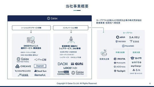 事業内容:ソーシャルメディアサービス事業、シェアリングエコノミー事業、web3/DAO事業、インキュベーション事業
