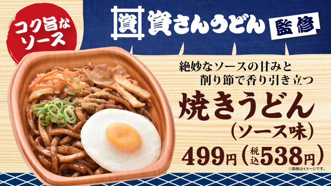 このたびの「焼きうどん」は、福岡県北九州市の小倉が発祥とされ、多くの飲食店で提供される人気メニューです。今回、この「焼きうどん」を北九州発のうどんチェーン店「資さんうどん」が監修しました。麺は通常より長めに茹で、やわらかな食感を追求し、甘みと酸味のバランスが絶妙なオリジナルソースと絡めております。トッピングの削り節を混ぜ込むことで、香りが引き立ち、美味しく召し上がれます。また目玉焼き風オムレツで味の変化も楽しめる一品に仕立てました。