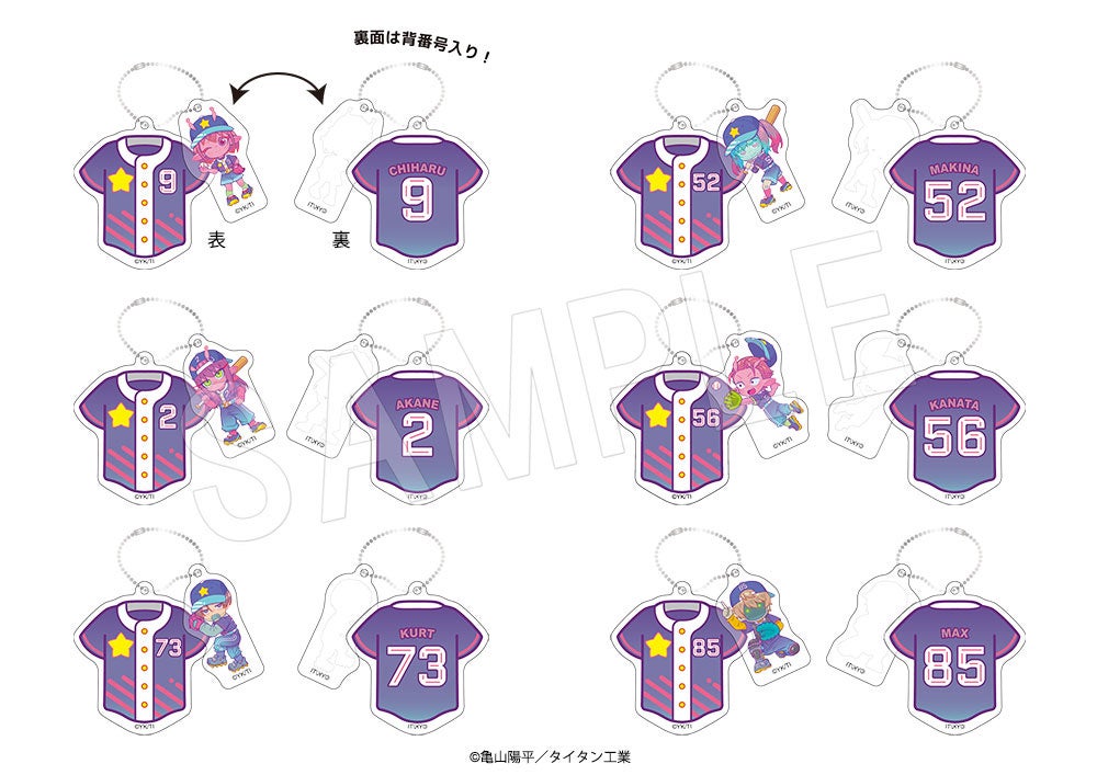 “ベースボール”をテーマに、亀山陽平監督が選んだ背番号のユニフォームを着用したキャラクターたちの描き下ろしミニキャライラストを使用した新作アイテムが「AnimeJapan 2026」で販売決定!