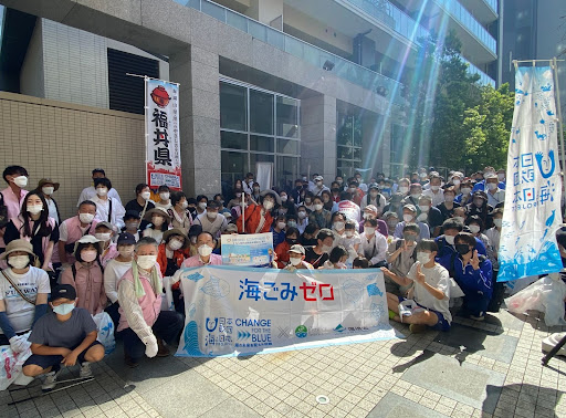 福井駅前にオフィスがある企業や団体、告知をみた家族連れなど多くの方にご参加いただきました。受付開始から開会式まで、ごみ袋を配布する列が途切れることなく続くほどの人が集まり、昨年より多くの方にご参加いただくことができました。イベントでは、海と日本プロジェクトオリジナルごみ袋を配布し、回収したごみと引き換えに記念品をプレゼントしました。ごみ拾い終了後には、海洋ごみ問題訴求メッセージパネルの前で写真を撮ったり、ごみ拾いの感想をいただき、海洋ごみ問題について関心を深めることができました。