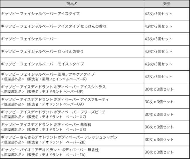 今回、さらに環境配慮型商品への対応を強化するため、EC限定で販売している、まとめ買いを好むお客さまに向けた各アイテム3個セットの個別外装を順次なくしてまいります。これにより1個当たりのプラスチック使用量が、フェイシャルペーパーは35%以上、ボディペーパーは40%以上削減されます。