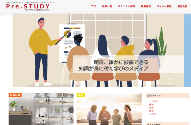 株式会社デジタル・ナレッジが運営する、会員数23万人超を誇るネットスクール「N-Academy(エヌ・アカデミー)」は、ためになる雑学とオンライン講座で知識を身につける学びのメディア「Pre.STUDY」を2022年8月25日(木)にオープンいたしました。