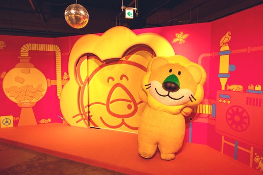 ゲートをくぐるとまず目に入るのは、高さ約3メートルの大きならいおんくんのモニュメント。まわりにはたくさんの「たべっ子どうぶつ」のパッケージが並び、お客様をお迎えいたします。