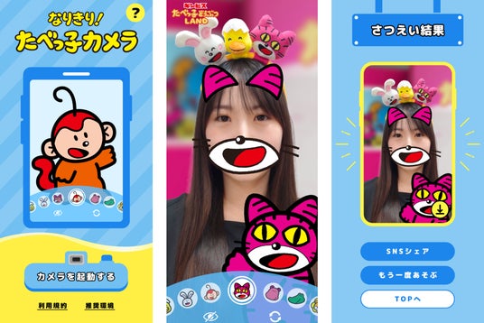 ARコンテンツの「なりきり!たべっ子カメラ」も新登場。お手持ちのスマートフォンで会場内の二次元バーコードを読み取るとカメラが起動し、好きなどうぶつさんになりきって写真撮影を楽しむことができます。