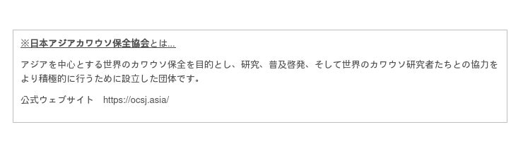 ‣ご参考:日本アジアカワウソ保全協会の佐々木理事長からいただいたメッセージ(5:46~)