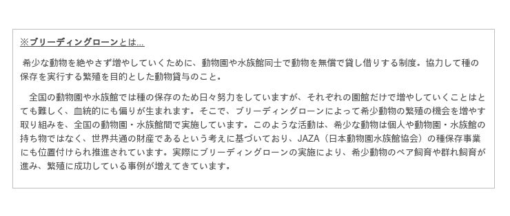 よって国内外飼育施設同士で連携を図り、計画的に種の保存をおこなっていくことが必須となっています。
