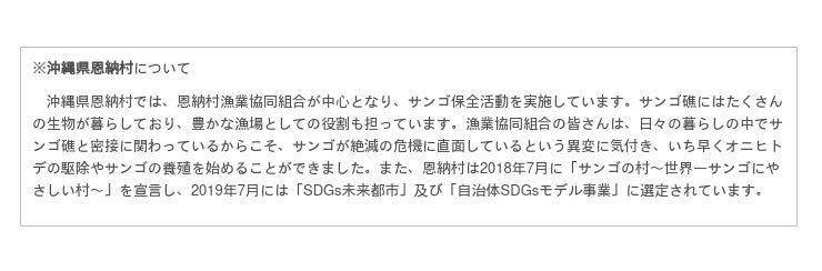 沖縄県恩納村の協力のもとサンゴの保全活動「サンゴプロジェクト」推進中