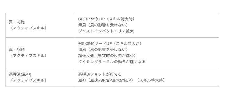 ▼「スリングワールドクラブ2」ギア(クラブ/ボール)搭載スキル